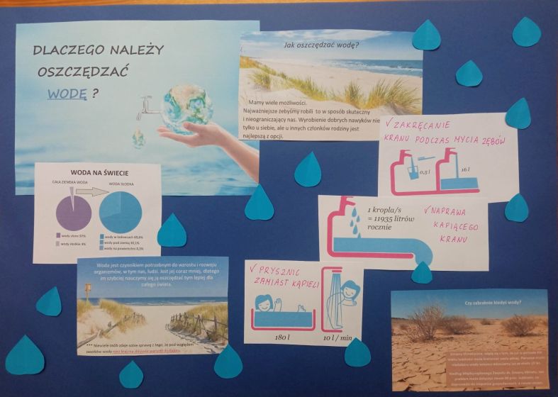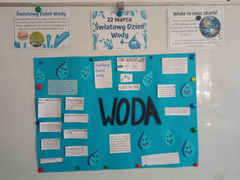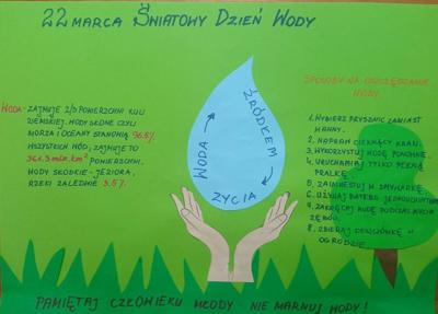 W naszej szkole uczniowie klas IV-VIII wzięli udział w tym wydarzeniu. Zostały przeprowadzone zajęcia o tematyce dotyczącej zasobów wodnych z wykorzystaniem materiałów PAH (filmy edukacyjne, animacje, quizy). Dodatkowo dzieci wykonały plakaty, na których zobrazowały sposoby oszczędzania wody. Sprawozdanie z akcji Światowy Dzień Wody z PAH zostało przesłane do organizatorów. Koordynatorem akcji w szkole była p. Wiesława Zbróg.