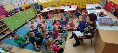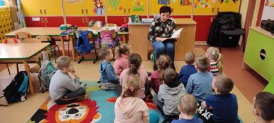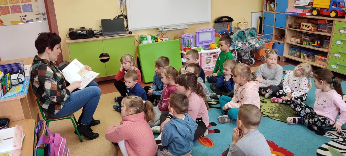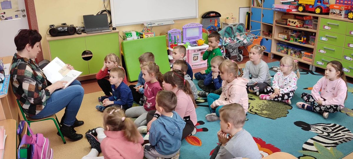 Każdego roku 2 kwietnia, w dniu urodzin Hansa Christiana Andersena, obchodzi się na całym świecie Międzynarodowy Dzień Książki dla Dzieci. Jego celem jest promowanie pięknej literatury dla młodego czytelnika. Na wybór patrona tego dnia miał wpływ fakt, że napisane przez niego baśnie znane są na całym świecie. Przeczytane po raz pierwszy w dzieciństwie zapadają głęboko w pamięć i zostają z nami przez całe dorosłe życie. Z tej też okazji oddział przedszkolny odwiedziła bibliotekarka p. Wiesława Zbróg i przeczytała utwór duńskiego baśniopisarza pt. „Nowe szaty cesarza”. Najmłodsi z uwagą wysłuchali czytanego tekstu, po czym wyczerpująco odpowiadali na zadawane pytania.