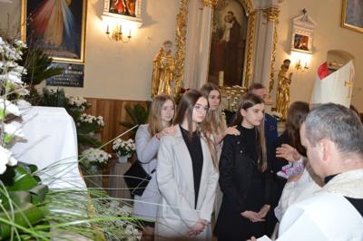 Ks. proboszcz Marek Bartosiński zaświadczył, że młodzi są godni do przyjęcia sakramentu bierzmowania, przygotowywali się do niego poprzez spotkania w grupach, modlitwę, udział w Eucharystii oraz sakrament pokuty i pojednania. Następnie sami kandydaci prosili o Dary Ducha Świętego.