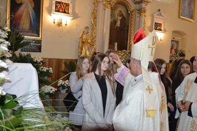 W dniu 14 kwietna 2023 r. podczas Mszy św. o godz. 17.00 w parafii pw. św. Piotra i Pawła w Radoszycach uczniowie klas ósmych przyjęli Sakrament Bierzmowania z rąk Jego Ekscelencji ks. bp. Marka Solarczyka. W uroczystości uczestniczył dyrektor szkoły Zbigniew Kowalczyk.