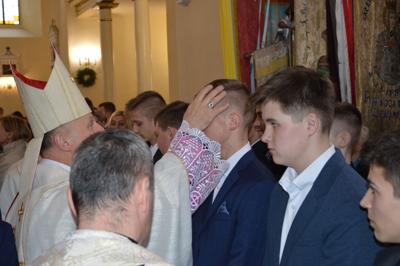 W pełnej ciepła i serdeczności homilii ks. bp Marek zwrócił się do młodzieży z zaproszeniem do jeszcze większej przyjaźni z Bogiem, zaangażowanie w życie kościoła i do odważnego świadectwa wiary. Wzywał do obrony wartości chrześcijańskich oraz postępowania według nauki Chrystusa. Sakrament dojrzałości chrześcijańskiej jest to sakrament, w którym Duch Święty umacnia chrześcijanina, aby wiarę swoją mężnie wyznawał, bronił jej i według niej żył. Chrześcijanin ma troszczyć się nie tylko o własne zbawienie, ale i o zbawienie innych ludzi. W tym celu zostaje przez Chrystusa posłany i wyposażony „mocą z wysoka”, Duchem Świętym i pełnią Jego darów: mądrości, rozumu, rady, męstwa, umiejętności, pobożności, bojaźni Bożej.