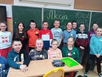 19 kwietnia 2023 r. przypada 80. rocznica wybuchu powstania w getcie warszawskim – największego zbrojnego zrywu Żydów podczas II wojny światowej, a zarazem pierwszego powstania miejskiego w okupowanej Europie. Tego dnia nasza szkoła włączyła się w akcję społeczno-edukacyjną Żonkile. Akcji od początku towarzyszy hasło „Łączy nas pamięć”, które podkreśla siłę wspólnoty, znaczenie solidarności, potrzebę dialogu ponad podziałami. Głęboko wierzymy, że pamięć o przeszłości jest jedną z nadrzędnych wartości, które nas jednoczą i nadają nam wspólną tożsamość – niezależnie od światopoglądu czy sympatii politycznych. Wykorzystano na lekcjach pakiet materiałów edukacyjnych dla każdej grupy wiekowej dzieci i młodzieży, w tym opowiadania dla najmłodszych oraz film animowany "Zdążyć przed Panem Bogiem". Na znak upamiętnienia tych wydarzeń uczniowie wykonali na lekcjach żółte żonkile, jako symbole zbiorowej pamięci o tych, którzy zginęli w czasie powstania w gettcie warszawskim.