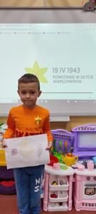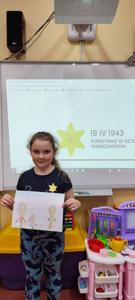 Na koniec, aby jeszcze bardziej upamiętnić rocznicę powstania w getcie warszawskim i na znak, że #ŁączyNasPamięć, wszystkie dzieci wykonały żonkila.