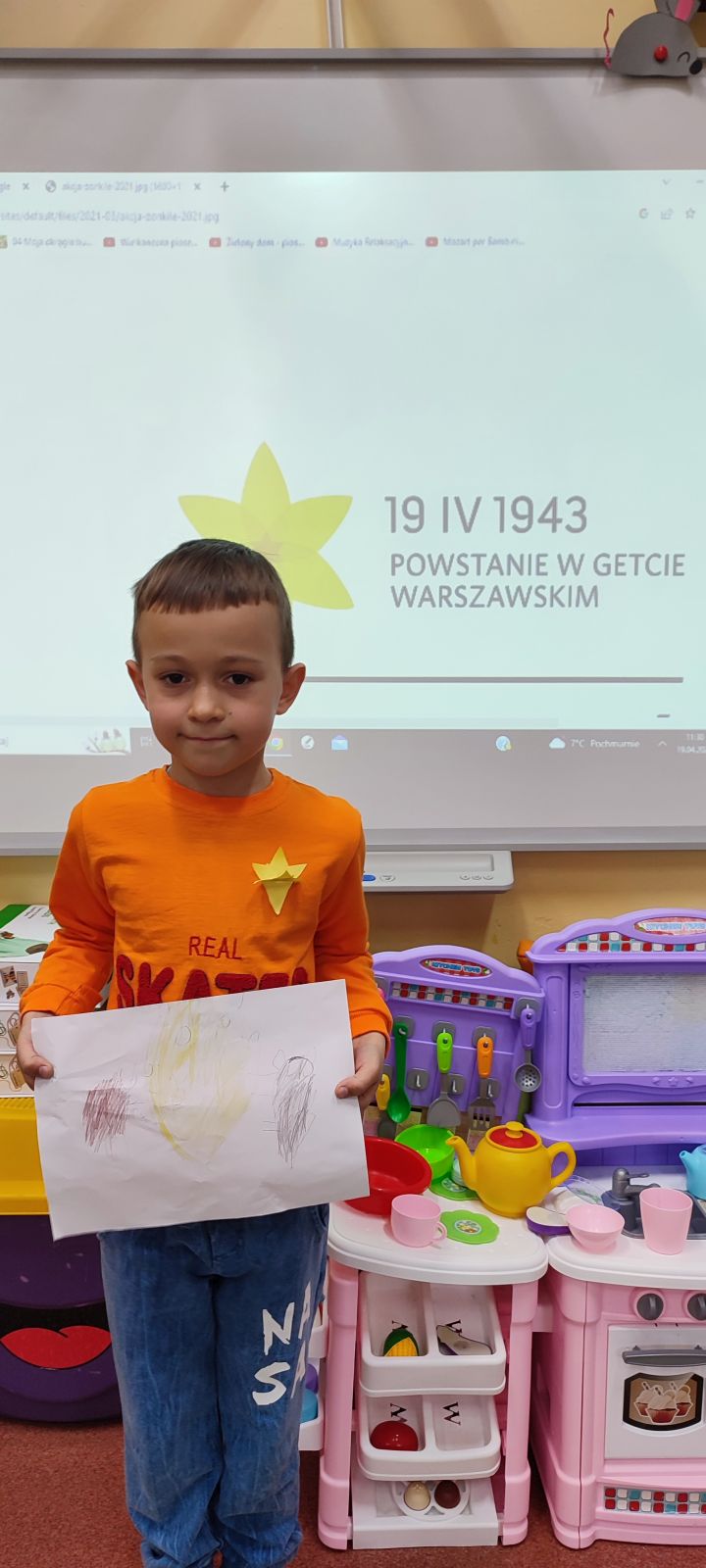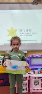 W dniu 19. 04. 2023r. z okazji przypadającej 80. rocznicy wybuchu powstania w getcie warszawskim dzieci z oddziału przedszkolnego pod opieką p. Joanny Ściegiennej i uczniowie klas I-III pod opieką p. Eweliny Pakuły i p. Aliny Dymińskiej po raz kolejny włączyli się w akcję społeczno-edukacyjną „Żonkile”, a tym samym wpisując się w program obchodów organizowanych przez Muzeum POLIN pod hasłem „Nie bądź obojętny”. Materiały edukacyjne udostępnione przez Muzeum POLIN do przeprowadzenia zajęć były dopasowane do wieku odbiorców i odbiorczyń.