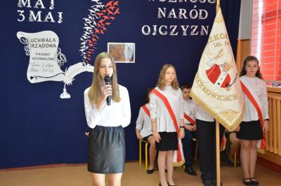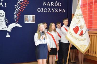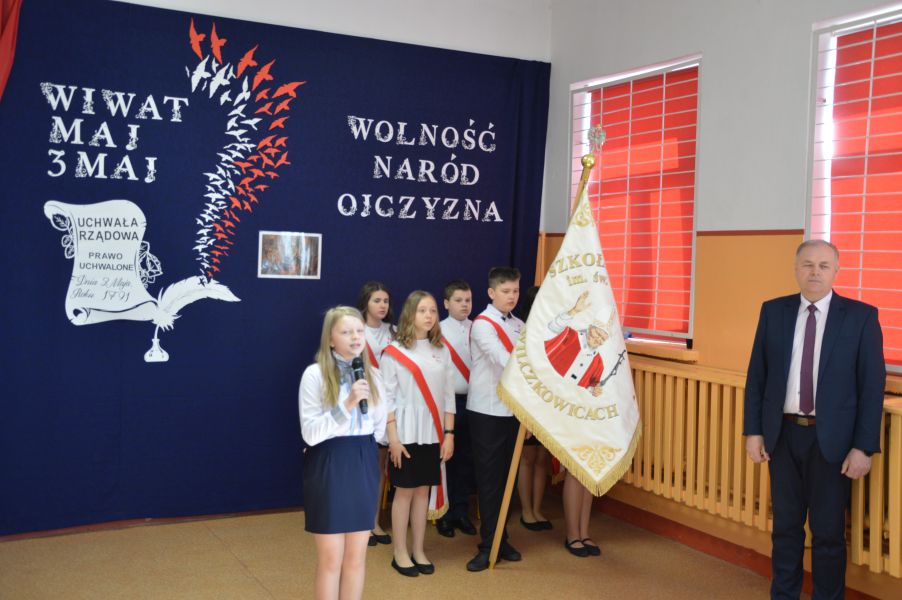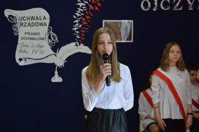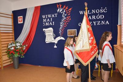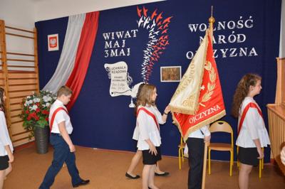 W czwartek – 27 kwietnia 2023 roku odbyła się uroczysta akademia poświęcona 232. rocznicy uchwalenia Konstytucji 3 Maja. Jej celem było uwrażliwienie uczniów na losy własnego kraju oraz zapoznanie z okolicznościami uchwalenia tego dokumentu. Apel rozpoczął się od wprowadzenia sztandaru szkoły i odśpiewania hymnu państwowego. Uczniowie pod kierunkiem p. Iwony Pakuły i p. Barbary Janus przygotowali żywą lekcję historii, która przeniosła wszystkich w minione wieki. Słowem i pieśnią młodzież przybliżyła wydarzenia związane z uchwaleniem tej Ustawy Rządowej. Akademię uświetniły piękne patriotyczne pieśni oraz wiersze. Piosenki śpiewali: Natalia Kabała – „Jest takie miejsce”, Katarzyna Zbróg – „Marsz, marsz Polonia”, Michał Piwowarczyk – „Mazurek 3 Maja”, Wiktoria Rodzoch, Martyna Pękala, Natalia Kabała, Katarzyna Zbróg – „Jak długo na Wawelu”. Uczniów z klasy II przygotowała do występu p. Ewelina Pakuła. Zaśpiewali piosenkę pt. „Rodzinny kraj”, a byli to: Lena Cichecka, Katarzyna Szustak, Alicja Laskowska, Martyna Wilk, Filip Mazur, Natalia Basiak, Maria Gutyter i Julia Szustak. Natomiast dzieci z oddziału przedszkolnego pod kierunkiem p. Joanny Ściegiennej zaśpiewały „Serca biało-czerwone”. Z kolei wiersze pięknie recytowały uczennice klasy VI, Karina Molasy - „Do kraju tego”, Anna Pakuła – „Gawęda o miłości ziemi ojczystej” , Barbara Kotras – „ Polska” i z kl. IV Wioletta Szustak, Paweł Usnarski, Milena Wilk - „Wolność, Naród, Ojczyzna”. W scenach dialogowych udział wzięli: Wiktor Kabała, Mikołaj Wiklak, Marlena Dzwonek, Łukasz Usnarski, Piotr Wawrzos i Bartłomiej Zbróg.