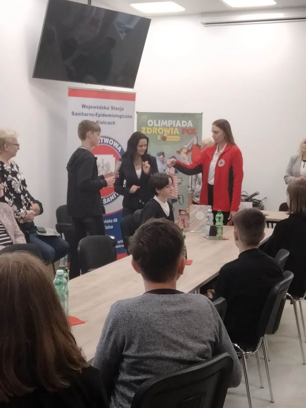 19 maja 2023 roku w Wojewódzkiej Stacji Sanitarno - Epidemiologicznej w Kielcach, odbył się etap okręgowy 30. jubileuszowej edycji Olimpiady Zdrowia PCK, w której wzięli udział uczniowie szkół podstawowych i średnich, z uzyskaną najwyższą liczbą punktów na etapie rejonowym. Podczas olimpiady sprawdzana była wiedza i umiejętności uczestników w zakresie zapobiegania zagrożeniom zdrowotnym, sposobów ochrony zdrowia i środowiska oraz zasad zdrowego stylu życia. Najlepsi uczniowie z 17 szkół podstawowych i średnich z województwa świętokrzyskiego rozwiązywali test wiedzy, obejmujący zagadnienia związane z promocją zdrowia, zdrowym stylem życia, zdrowym żywieniem, promowaniem aktywności fizycznej, ekologii, w tym przeciwdziałaniu marnowania żywności i surowców naturalnych. Uczeń klasy VI - Piotr Wawrzos, godnie reprezentował naszą szkołę, jednak nie udało mu się przejść do ostatniego (ogólnopolskiego) etapu Olimpiady. Serdecznie gratulujemy Piotrowi, życząc kolejnych sukcesów i wytrwałości w realizacji wszelkich planów i zamierzeń. Niech zaangażowana postawa Piotra, który jest dumą naszej szkoły będzie inspiracją i motywacją dla innych uczniów.