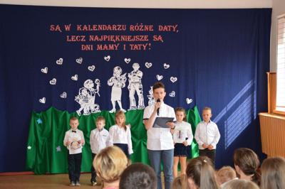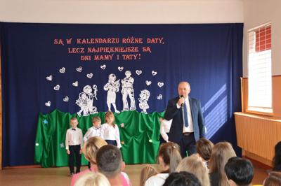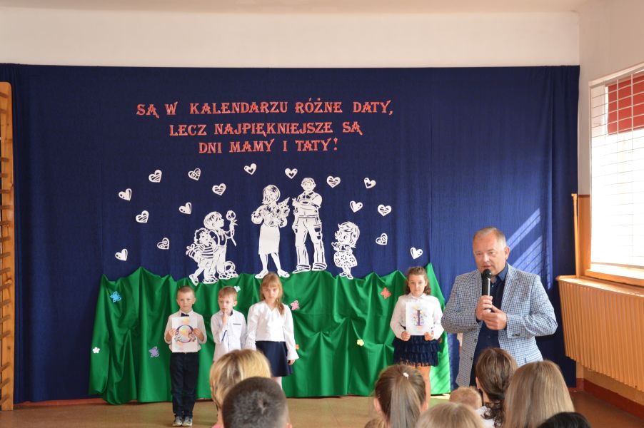 W piątek, 26 maja obchodziliśmy w naszej szkole jedno z najbardziej znanych świąt na całym świecie - Dzień Matki. Na wspólne celebrowanie tego jakże ważnego dnia przybyły do nas Mamy uczniów klas I-VII oraz Rodzice dzieci z Oddziału Przedszkolnego. Na wstępie uroczystości głos zabrał dyrektor szkoły dr Zbigniew Kowalczyk, witając zaproszonych gości: Burmistrza Miasta i Gminy Radoszyce Michała Pękalę, ks. proboszcza Przemysława Ilnickiego oraz Rodziców. Złożył również najserdeczniejsze życzenia wszystkim Mamom z okazji ich święta, podkreślając ogromną rolę matki w życiu każdego człowieka. Życzenia zgromadzonym Rodzicom złożył również Pan burmistrz Michał Pękala. Następnie głos oddano uczniom, którzy poprzez piosenki, wierszyki i tańce wyrazili wdzięczność swoim Rodzicom za poświęcenie i trud związane z ich wychowaniem. Artyści pod okiem wychowawców zaprezentowali się na wysokim poziomie. Przepiękne tańce i piosenki wywoływały uśmiech na twarzach, wzruszenie a także dumę ze swych pociech. Na zakończenie Pan Dyrektor podziękował uczniom za występy oraz wychowawcom za przygotowanie akademii. Wszystkie Mamusie otrzymały od swoich dzieci kwiatka, symboliczny prezencik oraz gorące buziaki i uściski.