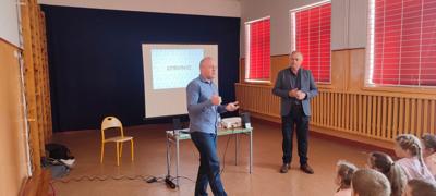 W ramach Świętokrzyskich Dni Profilaktyki oraz Szkolnych Dni Profilaktyki w dniu 30.05.2023 r. gościliśmy wśród dzieci z oddziału przedszkolnego i klas I-III przedstawiciela Powiatowej Stacji Sanitarno-Epidemiologicznej w Końskich pana Marcina Szyposzyńskiego, którego serdecznie przywitał Dyrektor szkoły pan Zbigniew Kowalczyk. Głównym celem spotkania było zwrócenie uwagi na prawidłowe odżywianie się, zdrowy styl życia. Podczas prelekcji zostały dokładnie omówione kwestie zdrowia zarówno fizycznego, psychicznego jak i społecznego. Pan Marcin Szyposzyński w swym wystąpieniu wzbogacił wiedzę uczniów z zakresu utrzymania zdrowia, czego należy się wystrzegać i unikać. Aby żyć zdrowo, należy być aktywnym fizycznie, zdrowo się odżywiać, przyjmować szczepienia, unikać nałogów (palenia papierosów, picia alkoholu).