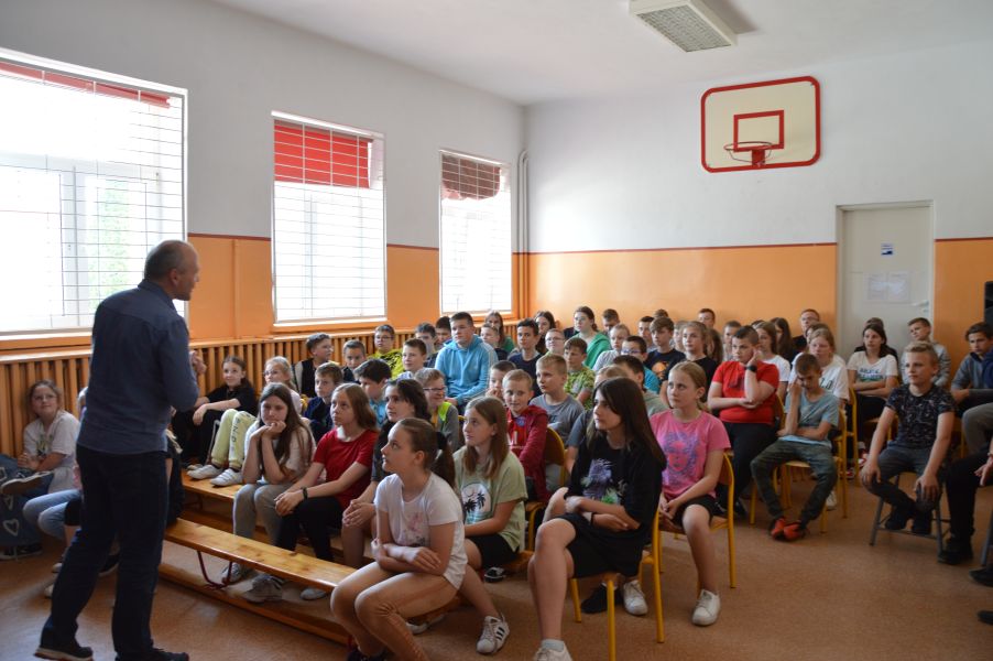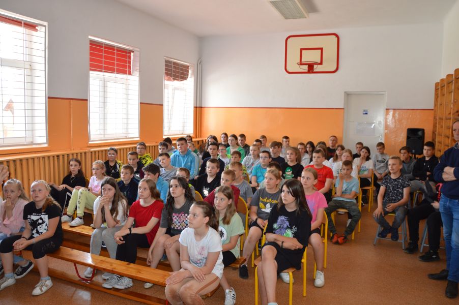 W ramach Świętokrzyskich Dni Profilaktyki oraz Szkolnych Dni Profilaktyki w dniu 30.05.2023 r. wśród uczniów klas IV-VIII przedstawiciel Powiatowej Stacji Sanitarno-Epidemiologicznej w Końskich pan Marcin Szyposzyński przeprowadził spotkanie edukacyjno-profilaktyczne na temat „Zdrowy styl życia bez używek i nałogów”. Głównym jego celem było zwrócenie uwagi na skutki nałogów, zwłaszcza zagrożenia związane z paleniem e-papierosów, piciem alkoholu oraz na korzyści płynące z prawidłowego odżywiania się i prowadzenia zdrowego stylu życia. Podczas spotkania zostały dokładnie omówione kwestie zdrowia zarówno fizycznego, psychicznego jak i społecznego. Pan Marcin Szyposzyński w swej prelekcji wzbogacił wiedzę uczniów z zakresu utrzymania zdrowia, czego należy się wystrzegać i unikać. Aby żyć zdrowo, należy być aktywnym fizycznie, zdrowo się odżywiać, przyjmować szczepienia, unikać nałogów (palenia papierosów, picia alkoholu, substancji psychoaktywnych i psychotropowych).