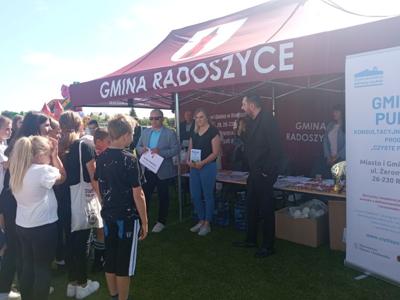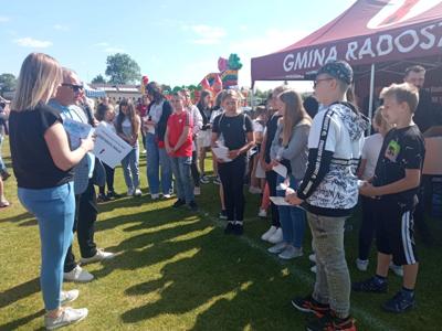 W dniu 4 czerwca na stadionie sportowym w Radoszycach odbył się Gminny Dzień Dziecka. Wszystkich zgromadzonych powitał Burmistrz Miasta i Gminy Radoszyce Michał Pękala. W tym szczególnym dniu na wszystkie dzieci czekało mnóstwo atrakcji, były dmuchane zamki, malowanie twarzy, zaplatanie kolorowych warkoczy, puszczanie baniek mydlanych, wata cukrowa, popcorn oraz liczne konkursy i konkurencje sportowe z nagrodami. Na początku spotkania ogłoszone zostały wyniki gminnego konkursu ekologicznego pod hasłem „Ziemio, oddychaj czystym powietrzem”. Zgłoszonych prac do konkursu było 114, każdy uczestnik, który wykonał pracę otrzymał pamiątkowy dyplom i słodki upominek. Na podium znalazły się dwie uczennice naszej szkoły, Marta Wawrzeńczyk -uczennica kl. V zajmując I miejsce i Karina Molasy- uczennica kl. VI zajmując drugie miejsce. Nagrodą za pierwsze miejsce był laptop, a za drugie głośnik przenośny. Każda z uczennic kilka słów opowiedziała o swojej pracy i co na niej przedstawiła do telewizji TKN 24, która gościła na wydarzeniu. Gratulacje w stronę uczennic popłynęły również ze strony dyrektora szkoły - Zbigniewa Kowalczyka obecnego pośród licznie zgromadzonych. W konkurencjach biegowych, w różnych kategoriach wiekowych, uczniowie również reprezentowali naszą szkołę. Podium i zarazem I miejsce zdobył uczeń kl. VII Wiktor Kabała, za co otrzymał pamiątkowy dyplom, medal i puchar.