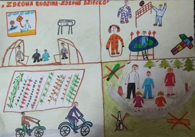 W ramach XVI Koneckich Dni Profilaktyki dzieci z oddziału przedszkolnego, uczniowie klasy III i uczennica klasy VI wzięli udział w Powiatowym Konkursie Plastycznym „Zdrowa rodzina – zdrowe dziecko” organizowanym przez Starostwo Powiatowe w Końskich, Powiatowe Centrum Pomocy Rodzinie w Końskich, Gminę Stąporków i współorganizatorów: Powiatową Stację Sanitarno-Epidemiologiczną w Końskich, Komendę Powiatową Policji w Końskich, Komendę 13 – 5 Hufca Pracy w Końskich, Komendę Powiatową Państwowej Straży Pożarnej w Końskich, KOPR Konecki Oddział Poszukiwawczo-Ratowniczy, pedagogów szkolnych.