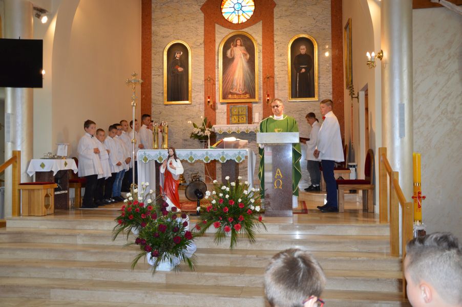 Uroczystość rozpoczęła się Mszą Świętą, którą odprawił ksiądz proboszcz Przemysław Ilnicki. Jej intencją było podziękowanie Bogu za kończący się rok szkolny, opiekę, otrzymane łaski i jednocześnie prośba o błogosławieństwo na dalsze dni życia, zwłaszcza zbliżający się czas wakacji. Bardzo księdzu proboszczowi dziękujemy za modlitwę. Następnie Dyrekcja, Grono Pedagogiczne i Uczniowie wspólnie ze swoimi Rodzicami przeszli na boisko szkolne., by tam wziąć udział w akademii oraz pożegnać swoich nauczycieli i rówieśników. Swoją obecnością podczas uroczystości zaszczycili nas: Burmistrz Miasta i Gminy Radoszyce pan Michał Pękala i Kierownik Usług Wspólnych w Radoszycach pani Ewelina Jańczyk , Uroczystość rozpoczęła się od wprowadzenia sztandaru i odśpiewania hymnu szkoły. Z kolei głos zabrał dyrektor szkoły Zbigniew Kowalczyk, który skierował wiele ciepłych słów płynących w kierunku przybyłych gości, rodziców i uczniów. Po wygłoszonym przemówieniu uczniowie klasy VII i VIII pod kierunkiem pani Barbary Burak i pani Barbary Janus zaprezentowali program słowno-muzyczny, w którym to po raz ostatni mogli się pokazać uczniowie klasy ósmej i wygłosić swe pożegnania i podziękowania dyrekcji, nauczycielom, rodzicom, pracownikom szkoły, organowi prowadzącemu oraz rówieśnikom. Podczas części artystycznej nie zabrakło chwil wzruszeń i śmiechu, a także niespodzianek przygotowanych dla klasy ósmej od młodszych kolegów z klasy siódmej. Następnie uczniowie otrzymali z rąk pana dyrektora i zaproszonych gości świadectwa oraz upominki w postaci książek. Zgodnie z tradycją szkoły nastąpiło wręczenie nagrody specjalnej w postaci statuetki dla Ucznia Roku. W tym roku szkolnym otrzymał taki zaszczytny tytuł: Piotr Wawrzos z klasy szóstej. Specjalne nagrody od Burmistrza Miasta i Gminy Radoszyce pana Michała Pękali dostali Michał Piwowarczyk z klasy trzeciej i Zuzanna Gorzelak z oddziału przedszkolnego za wybitne osiągnięcia artystyczne. Nie zabrakło również podziękowań za współpracę i zaangażowanie w pracę na rzecz szkoły dla wszystkich rodziców naszych tegorocznych absolwentów. Na zakończenie uczniowie zaśpiewali wspólnie z wychowawczynią piosenkę „Ostatni raz z moją klasą” .