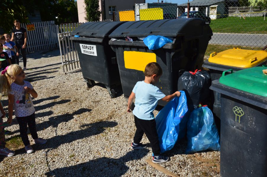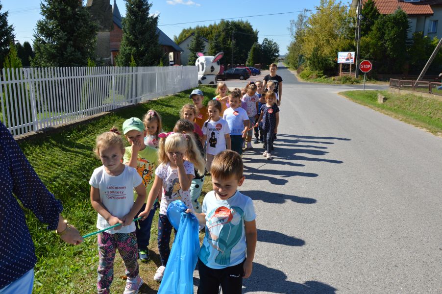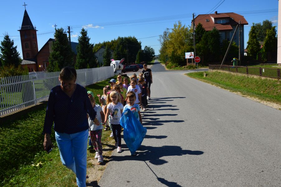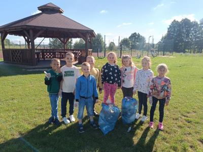 W dniu 15.09.2022r. dzieci z oddziału przedszkolnego i uczniowie klasy I pod opieką wychowawców: p. Aliny Dymińskiej i p. Joanny Ściegiennej włączyli się w akcję Sprzątania Świata. Hasło przewodnie tegorocznej akcji brzmiało: Sprzątanie świata łączy ludzi. Zanim dzieci wyruszyły w teren, wzięły udział w prelekcjach przeprowadzonych przez swych wychowawców. Następnie wyposażone w rękawiczki i worki sprzątały nie tylko teren wokół szkoły, ale i pobliską okolicę. Była to wspólna lekcja dotycząca promowania nieśmiecenia, edukacji odpadowej oraz inicjowania działań, dzięki którym zmniejszy się nasz negatywny wpływ na środowisko. W klasach IV-VIII uczniowie wzięli udział w zajęciach poświęconych tematyce segregacji odpadów.