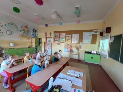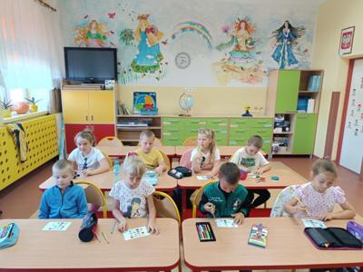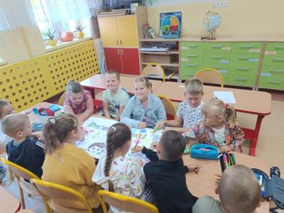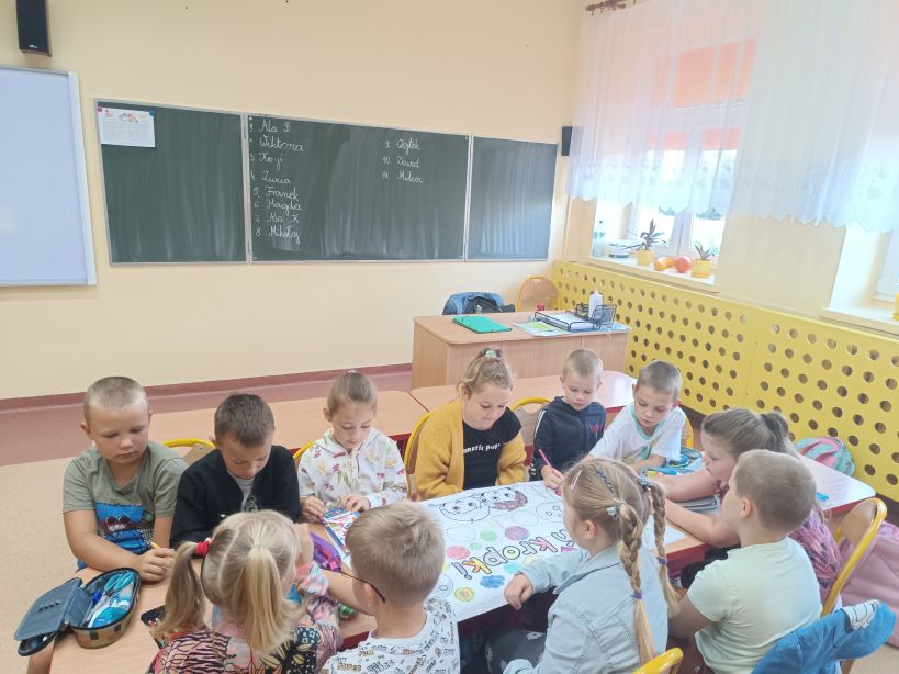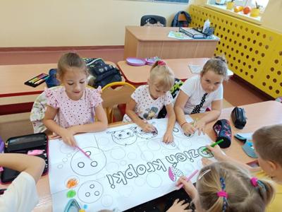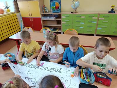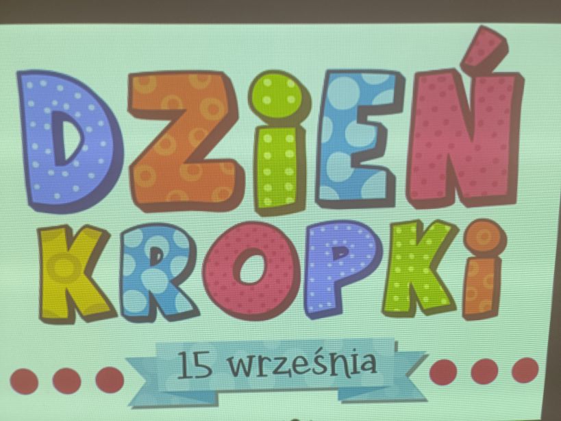 15 września obchodzimy Międzynarodowy Dzień Kropki. Jest to święto kreatywności, odwagi i zabawy. W naszej szkole najmłodsi – uczniowie oddziału przedszkolnego oraz uczniowie klasy pierwszej pod opieką swoich wychowawczyń J. Ściegiennej i A. Dymińskiej, od samego rana cieszyli się tym dniem. Zajęcia rozpoczęli od zapoznania się z Vashti. Dzieci uważnie wysłuchały opowiadania, jak to zwyczajna kropka zmieniła świat tej małej dziewczynki. Vashti, dzięki małej kropce zmieniła myślenie o sobie i uwierzyła we własne możliwości. Okazuje się, że każdy z nas ma jakieś ukryte zdolności i talenty. Kolejnym punktem tego dnia było uczestnictwo w wielu zabawach z kropką. Przedszkolaki ozdabiały kropkę, układały "kropkowe" wzory, puzzle, bawiły się chustą animacyjną. Pierwszaki wspólnie wykonali plakat, tworzyli kropkowe dzieła. Tego dnia również dostrzegliśmy kropki tam, gdzie wcześniej nikt ich nie zauważał. Okazało się, że kropki towarzyszą nam w codziennym życiu: są w kropkach biedronki, na skórze lamparta , na kostkach do gry, muchomorach, a nawet na paznokciach mamy. Z kropki można utworzyć słońce, barwne kwiaty i kolorowo mieniące się, jesienne drzewa. Na zakończenie każde dziecko otrzymało „Kropkowy dyplom”. To był wspaniały dzień, który upłynął nam bardzo szybko.