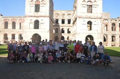Wyjazd rozpoczęliśmy poranną zbiórką przed budynkiem szkoły, a następnie ruszyliśmy w kierunku Ujazdu, małego miasteczka znanego przede wszystkim z imponującego Zamku Krzyżtopór. Zamek Krzyżtopór to jedna z najbardziej niezwykłych rezydencji obronnych w Polsce. Zbudowany w XVII wieku przez Jerzego Sebastiana Lubomirskiego, łączy w sobie elementy renesansowe, barokowe i gotyckie. Zwiedzanie zamku okazało się prawdziwą ucztą dla zmysłów. Przewodnik opowiedział nam o jego historii i właścicielach. Jednym z jego najbardziej charakterystycznych elementów jest gigantyczny dziedziniec, który w XVII wieku miał symbolizować cztery żywioły: ziemię, ogień, wodę i powietrze. Niestety, zamek uległ zniszczeniom w wyniku wojen i pożarów, ale obecnie trwają prace rekonstrukcyjne mające przywrócić mu dawny blask.