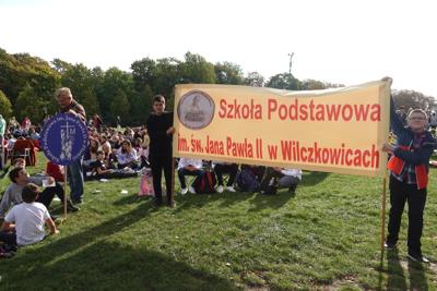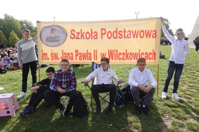 W dniu 12 października 2023 r. Poczet Sztandarowy Szkoły Podstawowej im. św. Jana Pawła II w Wilczkowicach oraz uczniowie klasa VIII wzięli udział w XXIII Ogólnopolskiej Pielgrzymce Rodziny Szkół im. Jana Pawła II na Jasnej Górze. Tegoroczna pielgrzymka odbywała się pod hasłem „Jan Paweł II. Cywilizacja życia”. Największe wrażenie robiła ogromna liczba uczestników, którzy zapełnili niemal całe jasnogórskie błonia i wały. Nasza szkoła brała udział w wydarzeniu już po raz czwarty. Spotkanie rozpoczęliśmy koncertem ewangelizacyjnym Magdy Anioł, wokalistki wykonującej współczesną muzykę chrześcijańską. Następnie uczestniczyliśmy we Mszy św., którą celebrował Duszpasterz Rodziny Szkół im. Jana Pawła II, biskup radomski Marek Solarczyk. Po zakończeniu nabożeństwa odczytano Akt Zawierzenia Matce Bożej Królowej Polski, a także list uczestników pielgrzymki do Ojca Świętego Franciszka. Gospodarze uroczystości – ojcowie paulini z Jasnej Góry - zaprosili wszystkich przybyłych gości na kolejną pielgrzymkę Rodzin Szkół im. Jana Pawła II. Modlitwa u stóp Pani Jasnogórskiej miała wymiar integracyjny z innymi placówkami, których patronem jest Wielki Papież-Polak. Wyjazd na zlot szkół noszących imię św. Jana Pawła II stał się już tradycją naszej szkoły. Opiekunami pielgrzymki były nauczycielki Anna Majchrzak - wychowawczyni klasy VIII oraz opiekunka Pocztu Sztandarowego Szkoły Podstawowej im. św. Jana Pawła II w Wilczkowicach Barbara Janus.