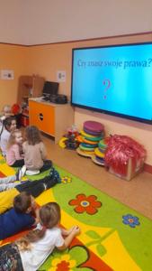 Dzieci podczas zajęć edukacyjnych, przeprowadzonych przez swych wychowawców panie: Alinę Dymińską, Joannę Ściegienną i Ewelinę Pakułę, poświęconych zarówno prawom jak i obowiązkom dziecka zapoznały się z wierszem Marcina Brykczyńskiego - „O prawach dziecka", obejrzały filmy edukacyjne dotyczące Konwencji Praw Dziecka oraz Prawa i obowiązki dzieci, po których miały możliwość odniesienia się do prezentowanych treści; śpiewały piosenkę Piosenka o prawach dziecka Małej Orkiestry Dni Naszych. W szkole została również wykonana gazetka ścienna na temat nie tylko praw dziecka, ale również obowiązków, o których dzieci także muszą pamiętać.