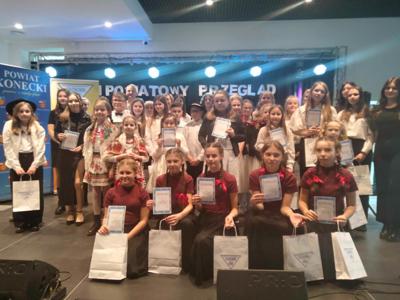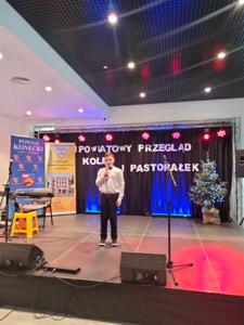 Wśród 12 szkół biorących udział w wydarzeniu znalazły się placówki z gmin: Końskie, Stąporków i Radoszyce. Naszą szkołę reprezentowali: Zuzanna Mączyńska (kl. IV), Natalia Kabała ( kl. VI) oraz Michał Piwowarczyk ( kl. IV), których piękne wykonania kolęd i pastorałek zostały docenione przez jury i publiczność gromkimi brawami.