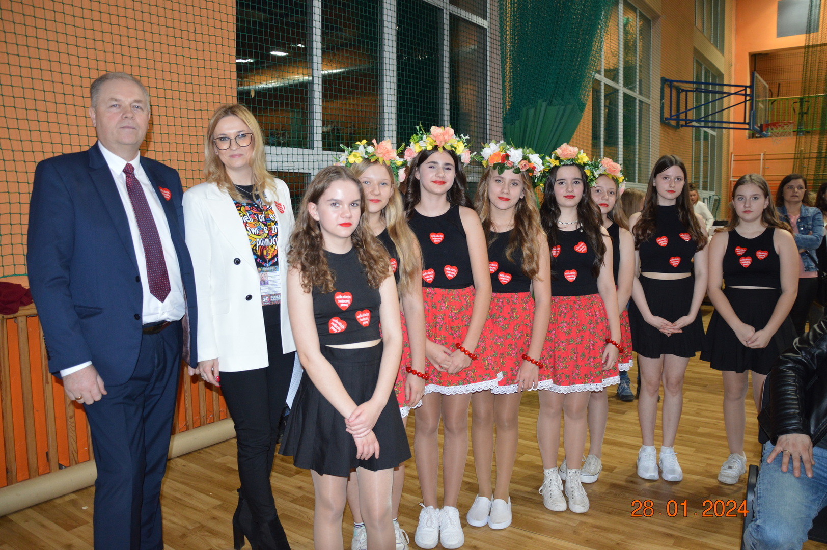 Po południu i wieczorem wszystkie szkoły podstawowe z naszej gminy miały możliwość zaprezentowania się w części artystycznej w hali sportowej w Radoszycach. Dziewczęta z klasy VI w składzie: Natalia Kabała, Natalia Szustak, Amelia Szustak, Izabela Opala, Marta Wawrzeńczyk, Wiktoria Rodzoch, Martyna Pękala i Maja Ciszek długo przygotowywały się do tego wydarzenia. Zaśpiewały piosenkę „Ech, poleczko” zespołu Guzowianki oraz zatańczyły do utworu „Magic in the air”. Nasze uczennice spisały się na medal, otrzymały gromkie brawa i w pełni zasłużone słowa uznania i gratulacji.
