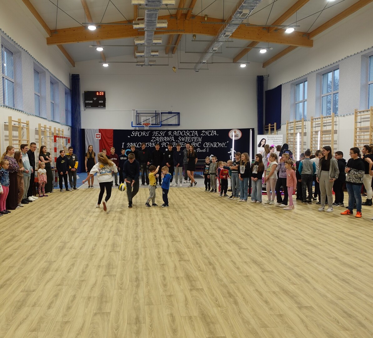 Tego dnia, nasza piękna sala gimnastyczna została podzielona na strefy tematyczne, gdzie uczniowie mieli okazję spróbować swoich sił w różnych dyscyplinach sportowych od przeciągania liny, licznych zabaw integracyjnych, konkurencji zręcznościowych, po rywalizację między uczniami a nauczycielami podczas „krzesełkowej koszykówki”. Dużą popularnością cieszyły się także stoły tenisowe, na których rozgrywano emocjonujące mecze. Niektórzy uczniowie prezentowali techniczne zagrania, podczas gdy inni imponowali szybkością poruszania się. W grę włączyli się również rodzice, i choć nie zawsze dysponowali taką samą energią co ich potomstwo, błyskawicznie rekompensowali to doświadczeniem. Każdy znalazł coś dla siebie, a duch fair play był zauważalny na każdym kroku.