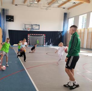 Dzieci z ogromnym zaangażowaniem brały udział w zabawach ruchowych, ćwiczeniach sprawnościowych oraz elementach techniki piłkarskiej. Spotkanie było świetną okazją do rozwijania sportowych pasji oraz do nauki współpracy i zdrowej rywalizacji.