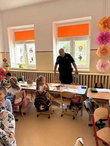 Funkcjonariusz przypomniał uczniom podstawowe zasady bezpieczeństwa: