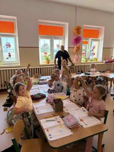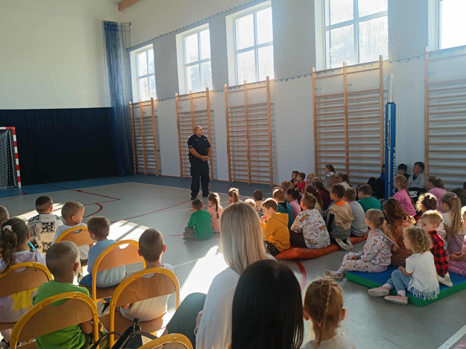 -edukacyjne z przedstawicielem Komisariatu Policji w Radoszycach. W wydarzeniu wzięli udział uczniowie klas I–VIII oraz dzieci z oddziału przedszkolnego. Jego celem było przypomnienie zasad bezpiecznego poruszania się po drodze do i ze szkoły oraz omówienie problemów związanych z przemocą rówieśniczą, w tym cyberprzemocą.