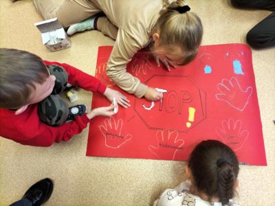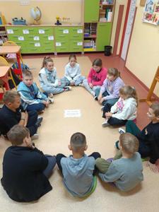 W oddziale przedszkolnym uczniowie uczestniczyli w licznych aktywnościach mających na celu rozwijanie umiejętności rozpoznawania i wyrażania emocji oraz budowanie pozytywnych relacji z rówieśnikami. Każdy dzień rozpoczynał się od pracy z „Tablicą emocji”, podczas której dzieci nazywały swoje uczucia i opowiadały, dlaczego właśnie tak się czują. Dzięki temu uczyły się otwartego mówienia o emocjach oraz zrozumienia, że wszystkie uczucia – zarówno te przyjemne, jak i trudne – są naturalne i ważne. Następnie przedszkolaki wysłuchały opowiadania „Serduszko z listków”, które stało się punktem wyjścia do rozmowy o przyjaźni, dobroci, szacunku i pomocy innym. W ramach zajęć plastycznych każde dziecko wykonało własne „Serduszko z listków”, które ozdobiło salę, tworząc wspólną wystawę promującą życzliwość i wzajemne wsparcie. Ważnym elementem tygodnia był również „Krąg przyjaźni”, podczas którego dzieci w zabawach integracyjnych uczyły się współpracy, dzielenia się, wyrażania wdzięczności i mówienia sobie miłych słów. Zajęcia sprzyjały wzmacnianiu więzi w grupie, rozwijaniu empatii i postawy wzajemnej akceptacji. Na zakończenie Tygodnia przedszkolaki spotkały się z funkcjonariuszem Policji, który w przystępny i przyjazny sposób opowiedział o zasadach dobrego zachowania, bezpieczeństwa oraz o tym, jak budować pozytywne relacje z innymi.