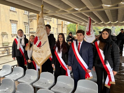 W dniu 09 października 2025 r. Poczet Sztandarowy Szkoły Podstawowej im. św. Jana Pawła II w Wilczkowicach z panem dyrektorem Zbigniewem Kowalczykiem oraz uczniowie klasy VIII wzięli udział w XXV Ogólnopolskiej Pielgrzymce Rodziny Szkół im. Jana Pawła II na Jasnej Górze. Tegoroczna pielgrzymka odbywała się pod hasłem „Św. Jan Paweł II. Prorok nadziei”. Duże wrażenie robiła ogromna liczba uczestników, którzy zapełnili niemal całe jasnogórskie błonia i wały. Wyjazd na zlot szkół noszących imię św. Jana Pawła II stał się już tradycją naszej placówki. Nasza szkoła brała udział w wydarzeniu już po raz szósty. Dla uczniów klasy VIII wyjazd był ogromnym przeżyciem duchowym. Spotkanie rozpoczęliśmy koncertem chóru GOSPEL Radom pod dyrekcją Iwony Skwarek. Następnie wysłuchaliśmy wprowadzenia do obchodów XXV Dnia Papieskiego, które poprowadził ks. Dariusz Kowalczyk, przewodniczący Zarządu Fundacji „Dzieło Nowego Tysiąclecia”. Z kolei uczestniczyliśmy we Mszy św., którą celebrował Duszpasterz Rodziny Szkół im. Jana Pawła II, biskup radomski Marek Solarczyk. Podkreślił on, że pielgrzymka stanowi przypomnienie, iż Papież jest ważną postacią dla nas oraz wzorem do naśladowania. Bp Solarczyk, zwracając uwagę na tegoroczne hasło pielgrzymki, wyraził ufność, że dla obecnej młodzieży Papież może być prorokiem nadziei, ponieważ wszystko, co jest jego duchowym dziedzictwem i przesłaniem, jest ciągle aktualne i ciągle inspiruje. Po zakończeniu nabożeństwa odczytano Akt Zawierzenia Matce Bożej Królowej Polski, a także list uczestników pielgrzymki do Ojca Świętego Leona XIV. Modlitwa u stóp Pani Jasnogórskiej miała wymiar integracyjny z innymi placówkami, których patronem jest Wielki Papież-Polak. Opiekunami uczniów były nauczycielki Wiesława Zbróg-wychowawczyni klasy VIII oraz opiekunka Pocztu Sztandarowego Szkoły Podstawowej im. św. Jana Pawła II w Wilczkowicach Barbara Janus.