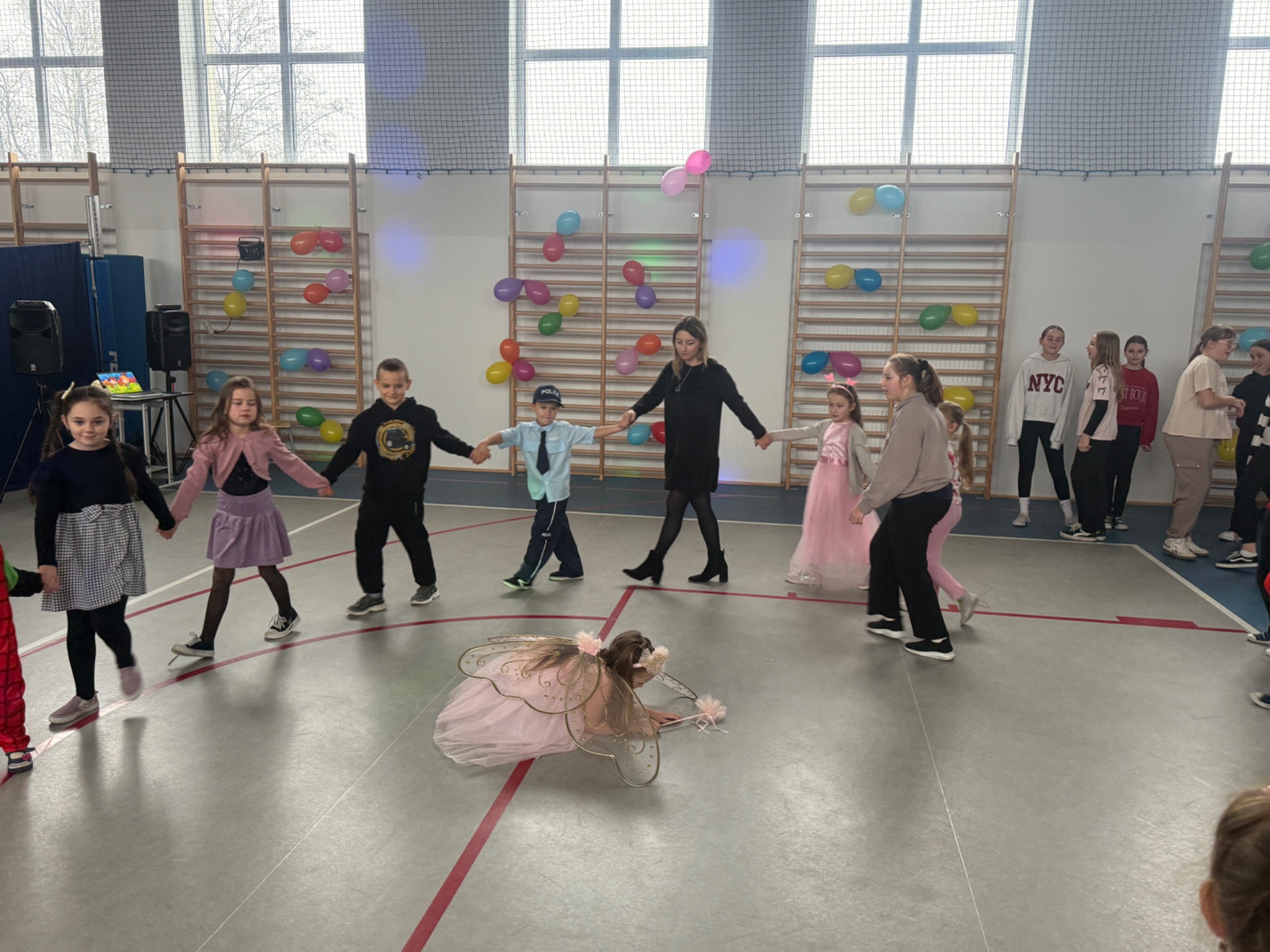 Dzieci chętnie brały udział w zabawach. Nie zabrakło również wspólnych tańców i zabaw ruchowych, które dostarczyły mnóstwo śmiechu i radości.