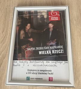 W niedzielę, 14 grudnia 2025 r. podczas trwania finału ogólnopolskiej akcji, w Weekendzie Cudów Szlachetnej Paczki w hali sportowej w Radoszycach, nasza szkoła otrzymała upominek i podziękowanie za udział w XXV edycji Szlachetnej Paczki.