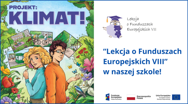 30 listopada 2023 Aktualności "LEKCJA O FUNDUSZACH EUROPEJSKICH VIII" W NASZEJ SZKOLE Ile wody potrzeba do produkcji ubrań mieszczących się w jednej szafie? Czy dżdżownice jedzą plastik? Ile śmieci rocznie produkuje każdy z nas? Czy Europa może być pierwszym na świecie neutralnym klimatycznie... Czytaj więcej