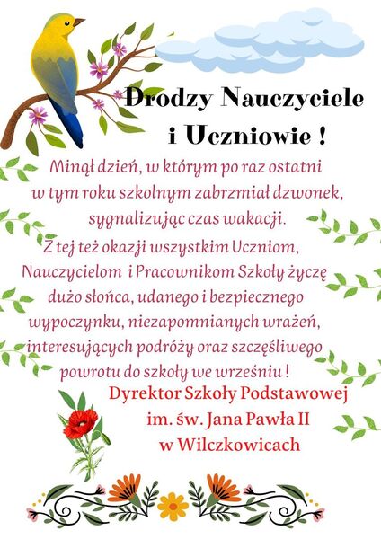 POCZET SZTANDAROWY Szkoły Podstawowej im. św. Jana Pawła II w Wilczkowicach w składzie: Marta Wawrzeńczyk, Dawid Wielgus, Natalia Szustak, Paulina Usnarska, Łukasz Usnarski, Barbara Kotras...